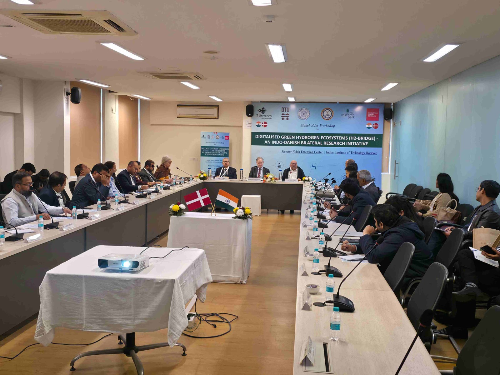 H2-BRIDGE, ग्लोबल इनोवेशन नेटवर्क प्रोग्राम के अंतर्गत संचालित एक रणनीतिक सहयोग है, जिसमें आईआईटी रुड़की, एमएनआईटी जयपुर, आईआईटी मद्रास, आईटी यूनिवर्सिटी ऑफ कोपेनहेगन, टेक्निकल यूनिवर्सिटी ऑफ डेनमार्क तथा इनोवेशन सेंटर डेनमार्क शामिल हैं। इस पहल का उद्देश्य भारत के नेशनल ग्रीन हाइड्रोजन मिशन के अनुरूप अनुसंधान और बड़े पैमाने पर तैनाती के बीच सेतु स्थापित करना है।